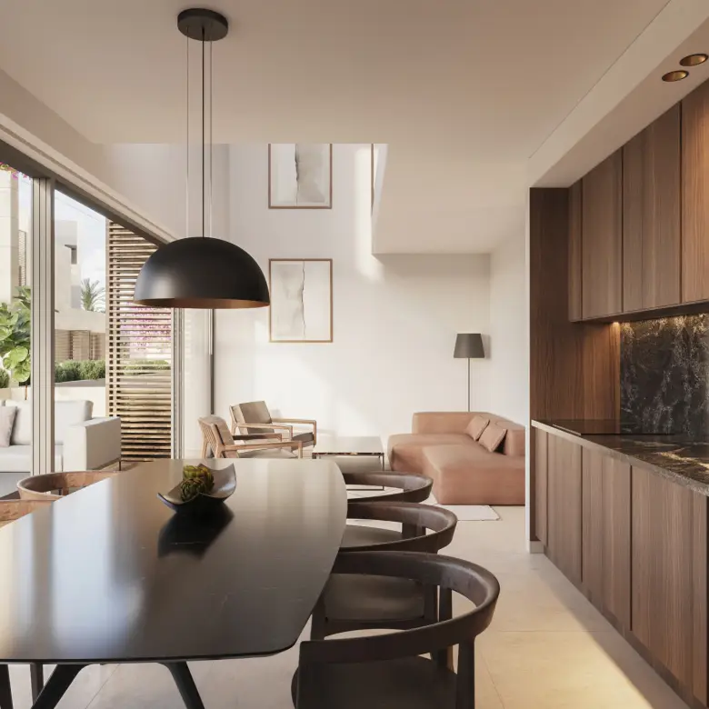 Zaprojektowany przez Schiemann Weyers Architects (Rotterdam) i OCWA Architects(Marbella), projekt jest ucieleśnieniem doskonałości architektonicznej i wyrafinowanego współczesnego stylu. Wszystkie domy wychodzą na południe, zapewniając maksymalne naturalne światło i ciepło przez cały rok. Okna sięgające od podłogi do sufitu oświetlają każdą przestrzeń, a otoczone zielenią tarasy rozciągają się na zewnątrz, płynnie łącząc się z naturalnym otoczeniem.