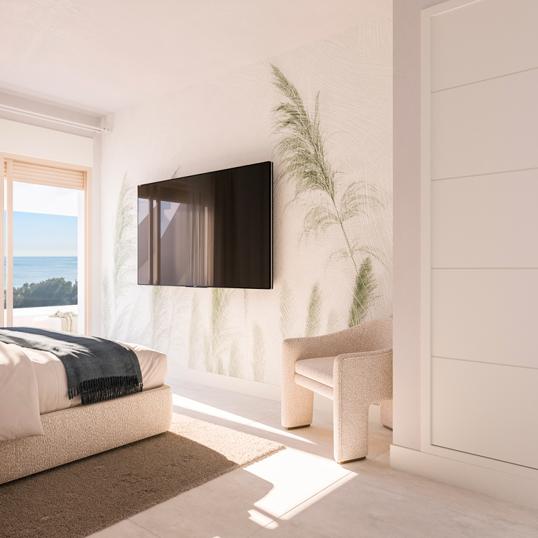 Ta elegancka nowa inwestycja znajduje się w zachodniej części Estepony, zaledwie kilka kilometrów od tętniącego życiem centrum miasta i obok spokojnej dzielnicy Arroyo Enmedio. Jego uprzywilejowana pozycja oferuje bliskość szerokich, spokojnych plaż Arroyo Vaquero, a jednocześnie jest otoczony górami i widokiem na Morze Śródziemne – idealna harmonia luksusu, natury i spokoju.