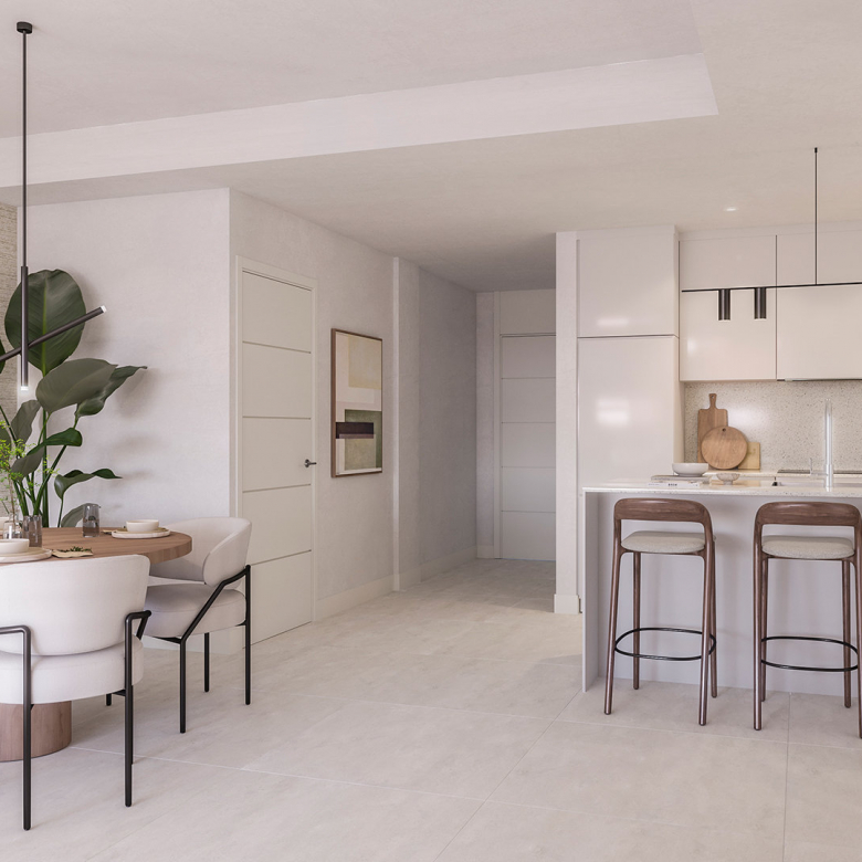 Every home in the development has been crafted for those seeking a perfect balance between elegance and functionality. Spacious interiors, open layouts, and strategic orientations maximise natural light and sea views. The use of high-quality materials — such as large-format porcelain floors and expansive windows — enhances both aesthetics and comfort, creating warm, welcoming spaces filled with daylight.