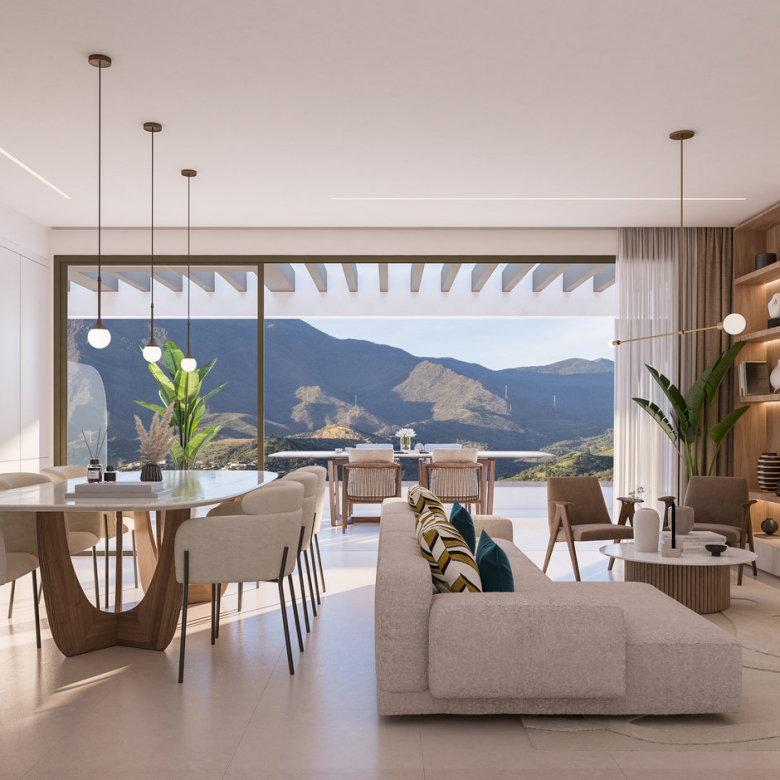 Welcome to an exceptional residential development in the sought-after area of Las Mesas, Estepona. Its privileged location offers bright and spacious homes with breathtaking views of both the Mediterranean Sea and the surrounding mountains – all immersed in natural light and refreshed by the gentle sea breeze.