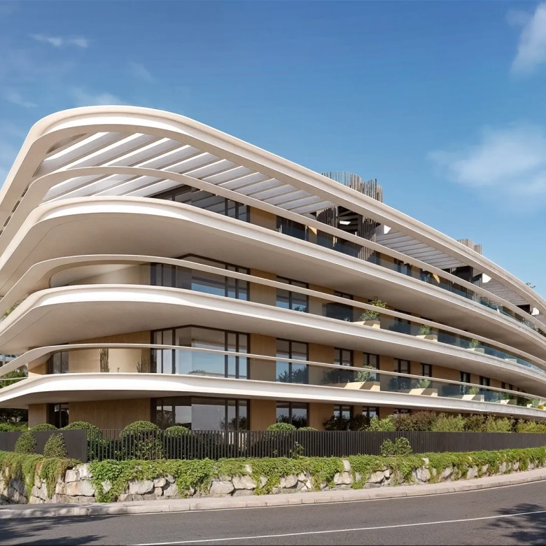 Designed by the prestigious COMPLOT Architects, Moon 64 reflects a refined vision of contemporary residential architecture based on accessibility, sustainability, functionality, and modern design. The complex is composed of two elegant crescent-shaped buildings, each with four levels: ground floor, first floor, second floor, and penthouse level. In total, the development offers 64 exclusive 2- and 3-bedroom residences.