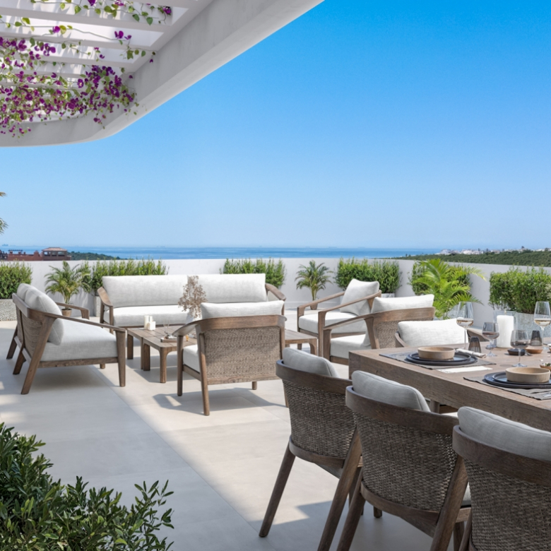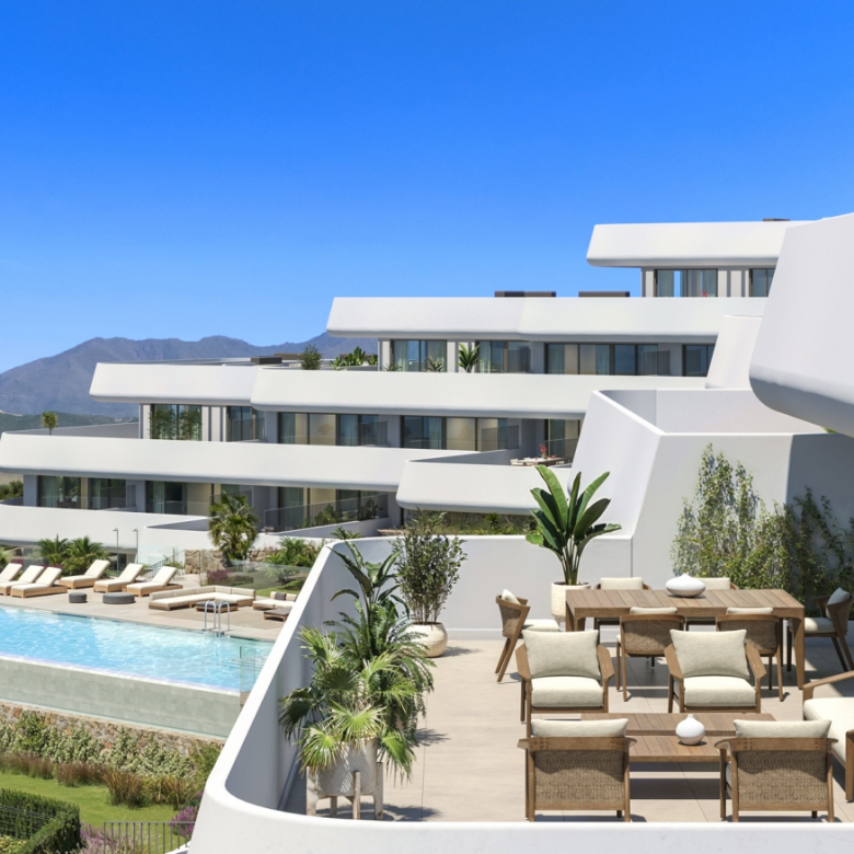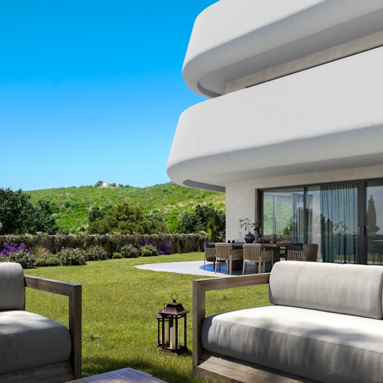 Situated in the peaceful enclave of Casares Golf, the project comprises ten low-rise blocks in an elevated, noise-free setting. Next to the prestigious Finca Cortesín Resort and only minutes away from beaches, golf courses, marinas, fine dining, and essential services, the development enjoys quick access to Sotogrande, Gibraltar, and Marbella.
