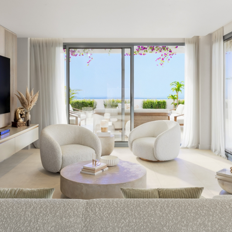 From the ground-floor residences with private gardens to the spectacular penthouses, all homes are designed to embrace uninterrupted views of the Mediterranean Sea and the golf course. Spacious interiors open onto cascading terraces, where architecture flows naturally into the landscape.