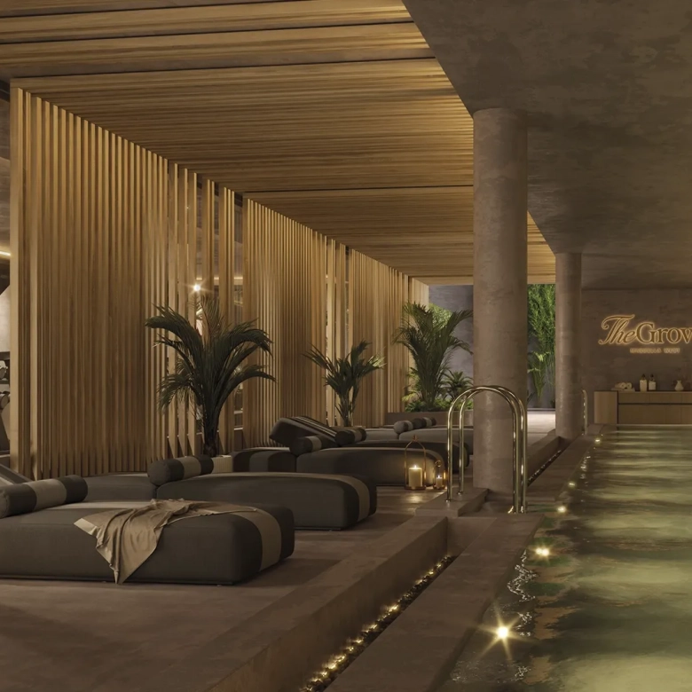 The Grove has been conceived as a high-end residential resort, where contemporary architecture is enhanced by meticulously landscaped gardens that create an elegant, private, and harmonious environment. The design integrates seamlessly with its surroundings, offering a refined sense of calm and exclusivity.