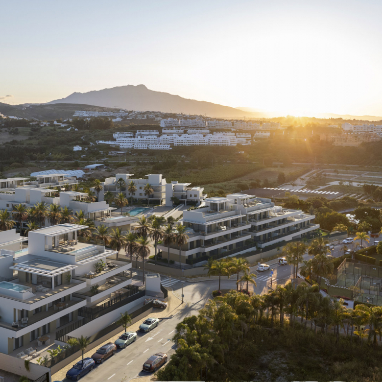 This beautiful new development is located in the prestigious La Resina Golf area of Estepona, within the sought-after New Golden Mile, close to Puerto Banús and Marbella. Surrounded by nature, the location offers a unique setting where panoramic sea views blend with impressive mountain landscapes, creating a truly idyllic environment on the Costa del Sol.